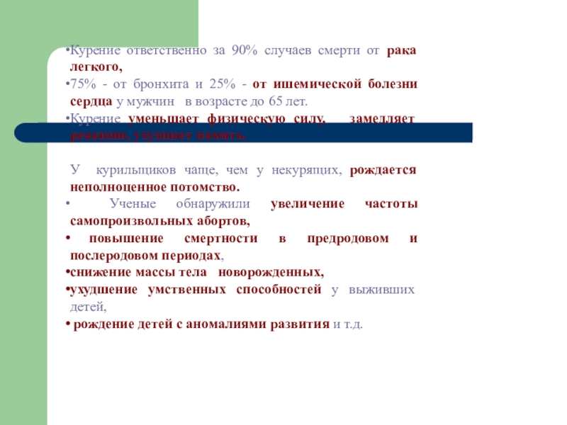 Слайд 5Курение ответственно за 90% случаев смерти от рака легкого,