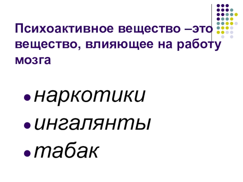 Слайд 16Психоактивное вещество –это вещество, влияющее на работу мозга