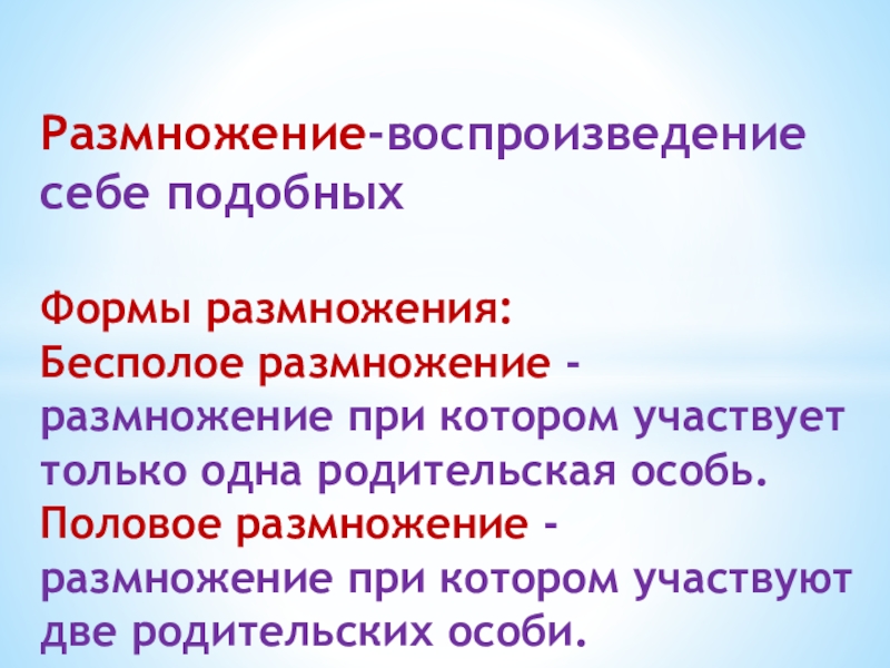 Половое размножение - размножение при котором участвуют две родительских особи.