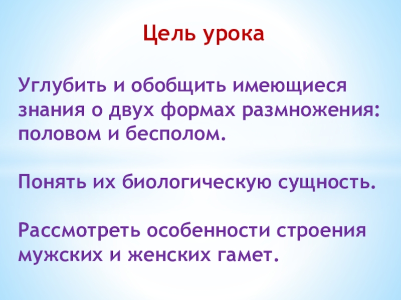 Углубить и обобщить имеющиеся знания о двух формах размножения: