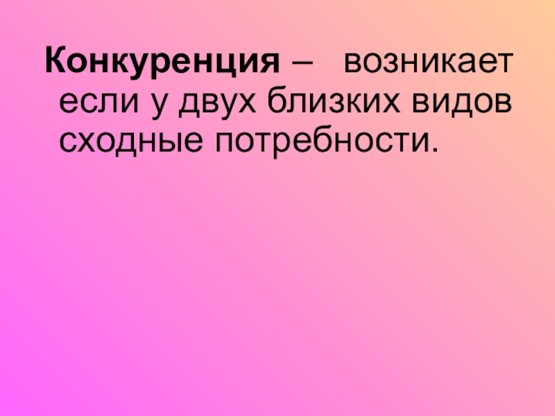 Конкуренция – возникает если у двух близких видов сходные потребности.