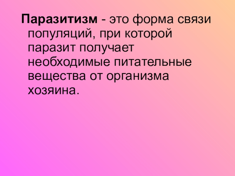 Паразитизм - это форма связи популяций, при которой паразит получает необходимые