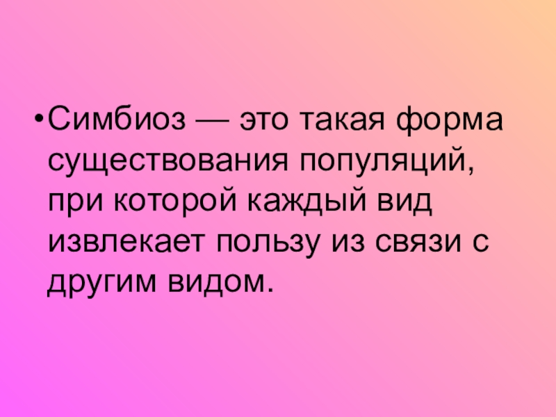 Симбиоз — это такая форма существования популяций, при которой каждый вид извлекает пользу из связи с другим