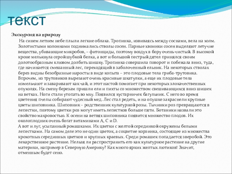 Рассказ должен содержать описание природы места действия, интересную биологическую информацию, определенное количество неточностей, которые предстоит выявить читателям, ну и, конечно, иметь увлекательный сюжет. Можно усложнить задание, оговорив, что и достоверные факты, и ошибки должны быть объединены какой-то конкретной темой. Например, рассказы «Экскурсия на природу» или «Эликсир бессмертия».