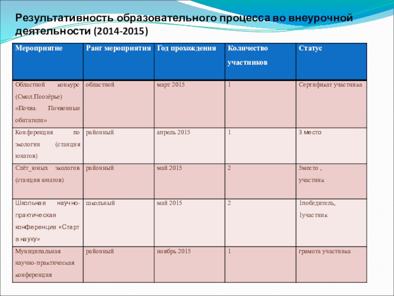 Слайд 28Результативность образовательного процесса во внеурочной деятельности (2014-2015)