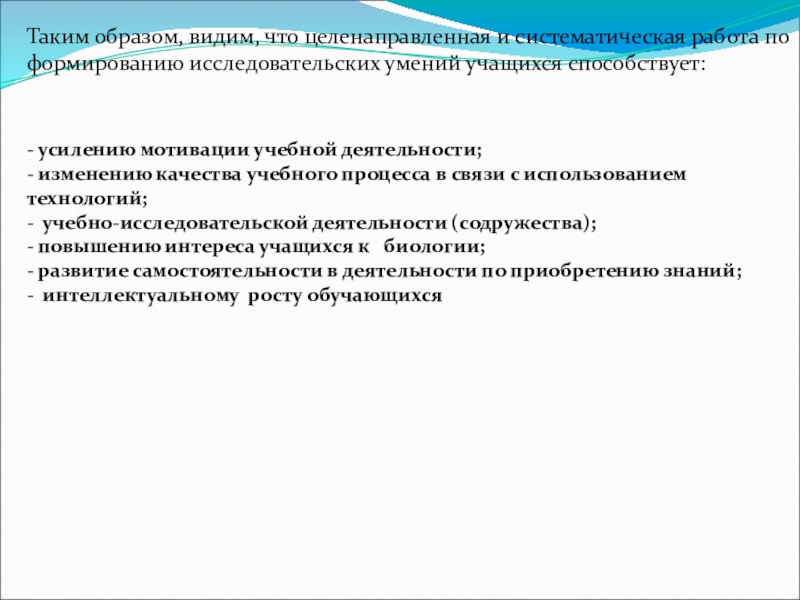 Слайд 29Таким образом, видим, что целенаправленная и систематическая работа по формированию исследовательских