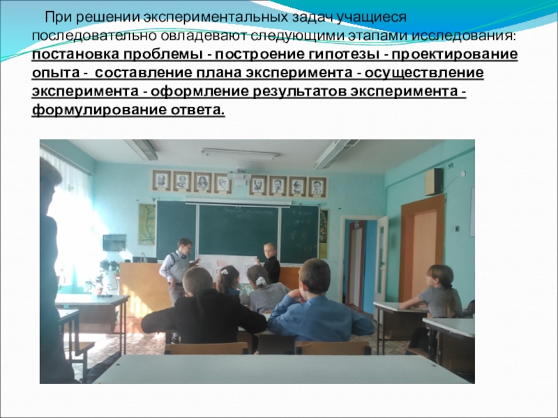 Слайд 24 При решении экспериментальных задач учащиеся последовательно овладевают следующими этапами исследования: