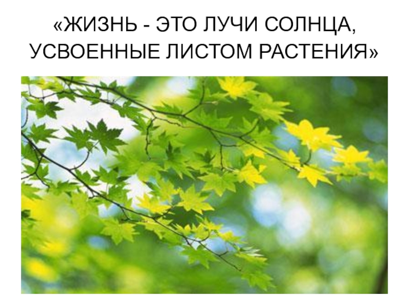 Слайд 23«ЖИЗНЬ - ЭТО ЛУЧИ СОЛНЦА, УСВОЕННЫЕ ЛИСТОМ РАСТЕНИЯ»