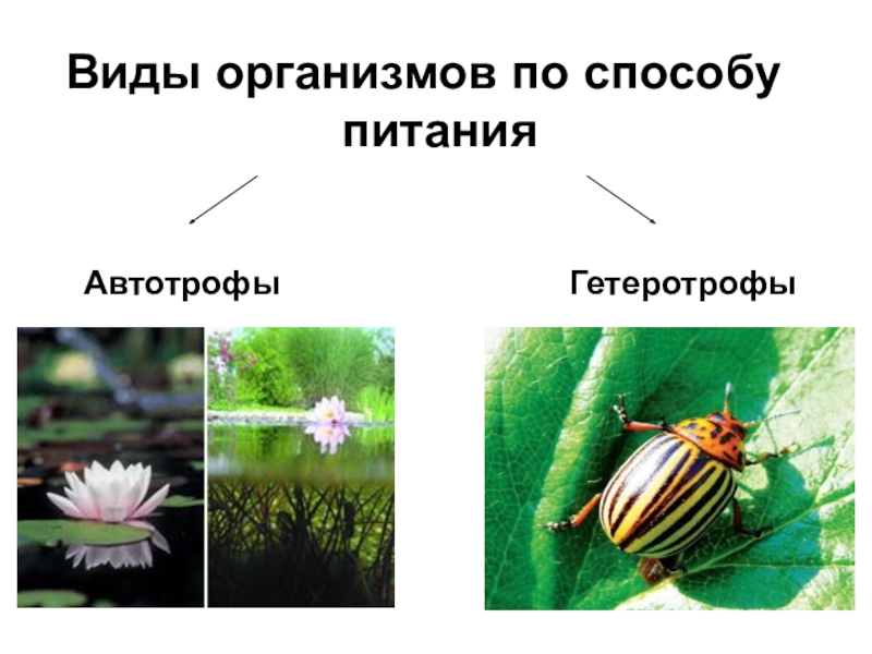 Виды организмов по способу питанияАвтотрофыГетеротрофы