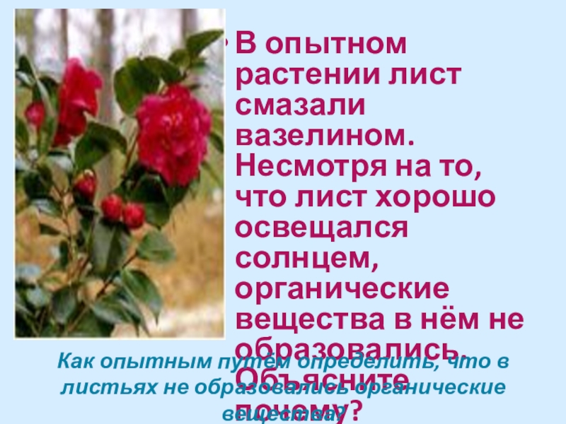 Как опытным путём определить, что в листьях не образовались органические вещества?
