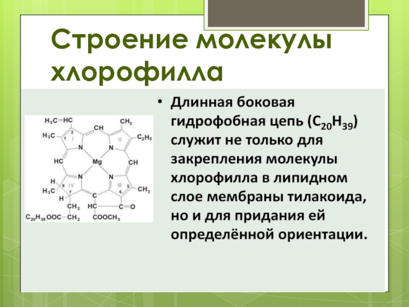 Строение молекулы хлорофилла