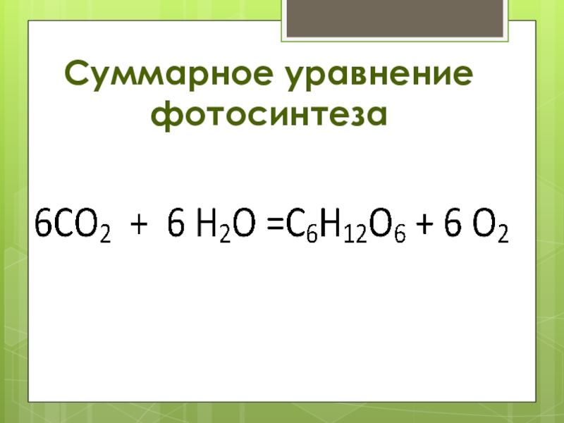 Слайд 9Суммарное уравнение фотосинтеза