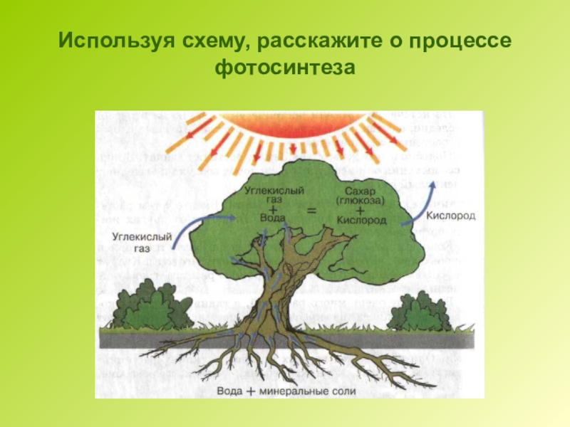 Слайд 29Используя схему, расскажите о процессе фотосинтеза