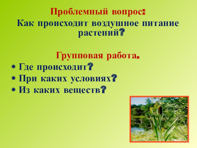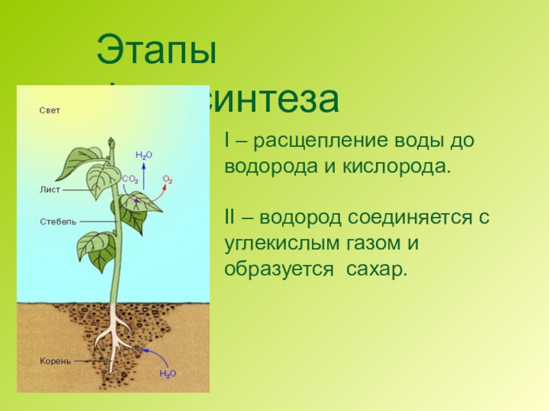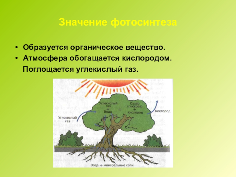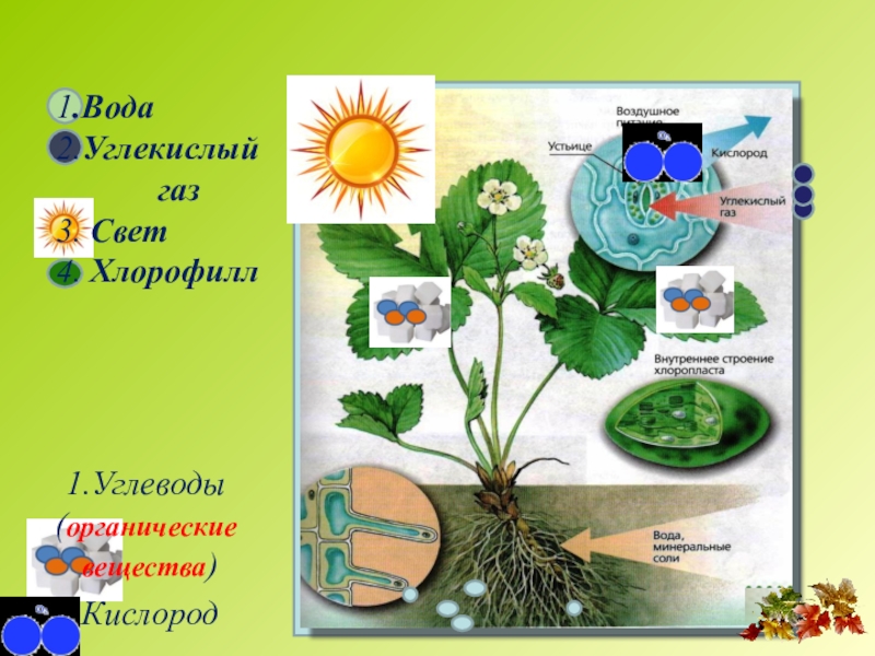 газа и воды) в зелёных листьях с использованием солнечного света.