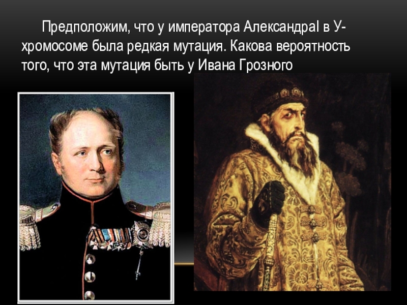 Слайд 16 Предположим, что у императора АлександраΙ в У-хромосоме была редкая мутация. Какова