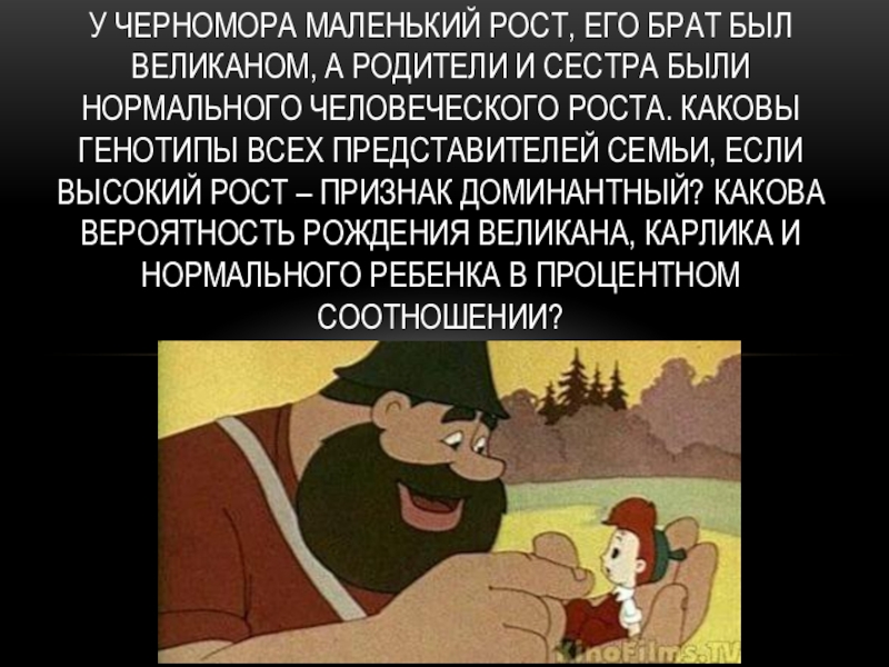 Слайд 9У Черномора маленький рост, его брат был великаном, а родители и