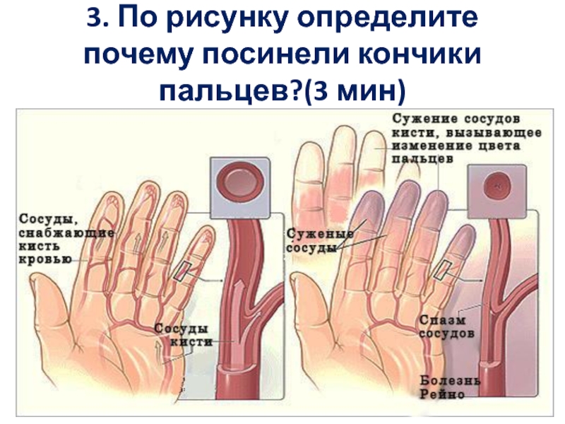 3. По рисунку определите почему посинели кончики пальцев?(3 мин)