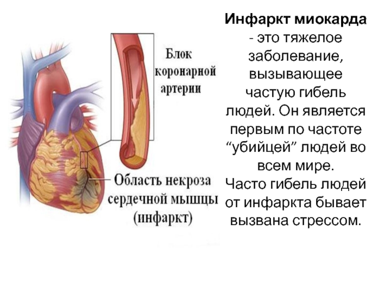 является первым по частоте “убийцей” людей во всем мире. Часто гибель людей от инфаркта бывает вызвана стрессом.