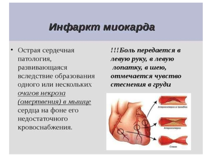 Слайд 26Инфаркт миокарда - это тяжелое заболевание, вызывающее частую гибель людей. Он