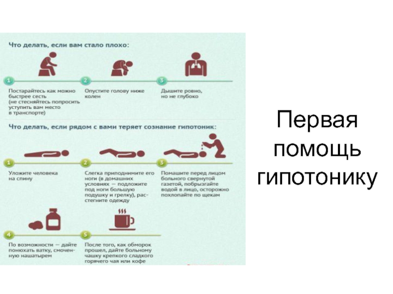 Слайд 20Первая помощь гипотонику