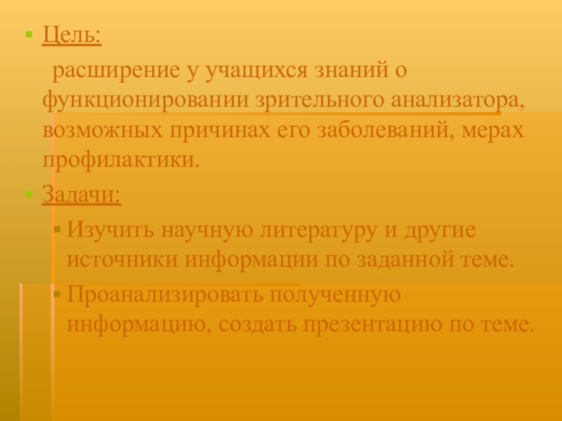 анализатора, возможных причинах его заболеваний, мерах профилактики.