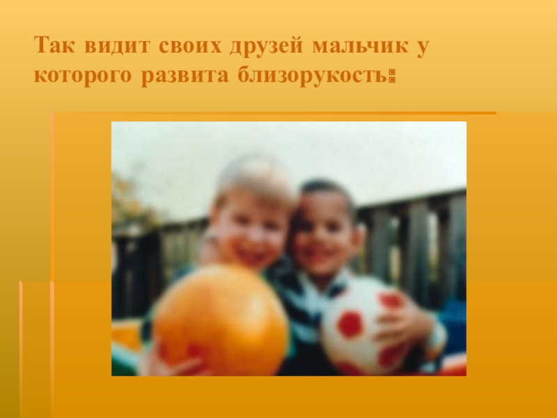 Слайд 7Так видит своих друзей мальчик у которого развита близорукость: