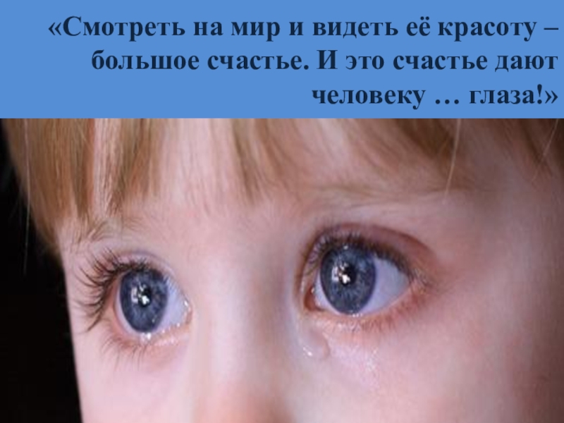 «Смотреть на мир и видеть её красоту – большое счастье. И это счастье дают человеку … глаза!»