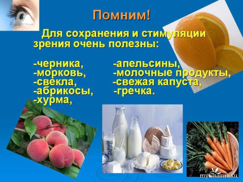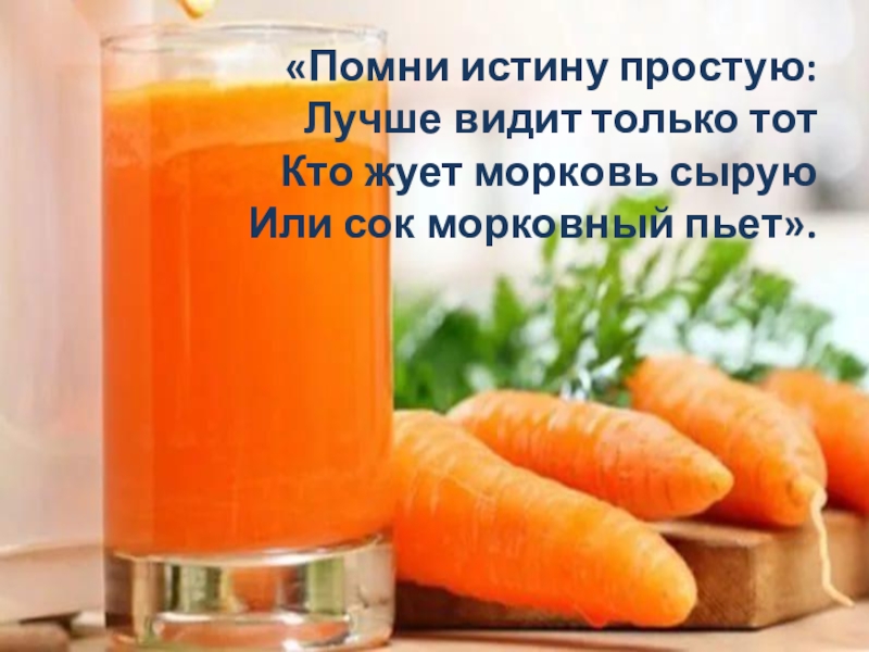 Слайд 17 «Помни истину простую: Лучше видит только тот Кто жует морковь сырую Или сок