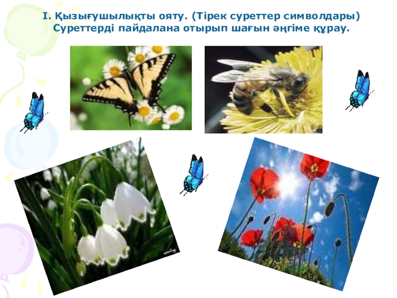 Слайд 4І. Қызығушылықты ояту. (Тірек суреттер символдары) Суреттерді пайдалана отырып шағын әңгіме