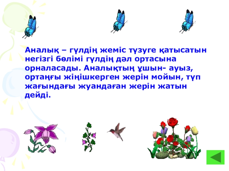Слайд 17Аналық – гүлдің жеміс түзуге қатысатын негізгі бөлімі гүлдің дәл ортасына