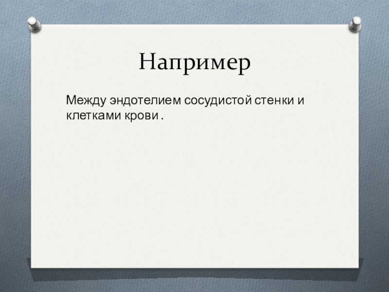 Например Между эндотелием сосудистой стенки и клетками крови .