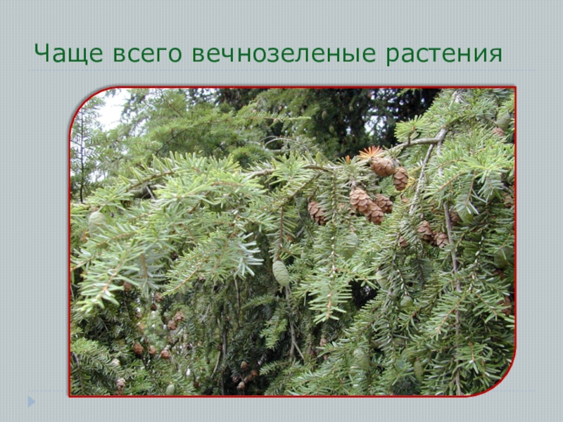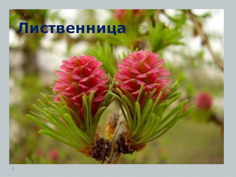 2.На верхушках молодых побегов - женские красноватые шишки.