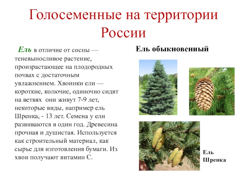 Представители:ель, сосна, пихта, лиственница и можжевельник и т.д.