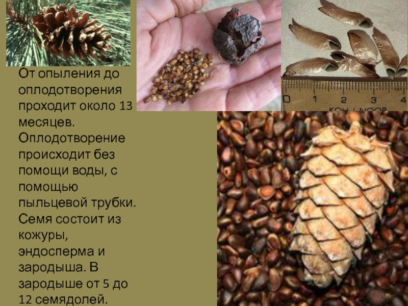 Слайд 8От опыления до оплодотворения проходит около 13 месяцев. Оплодотворение происходит без