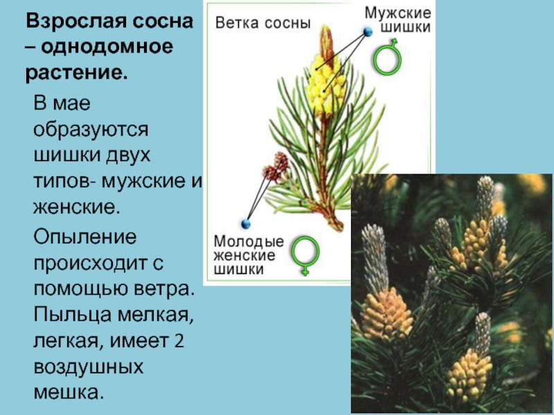 Слайд 7Взрослая сосна – однодомное растение.