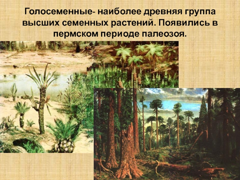 Слайд 2Голосеменные- наиболее древняя группа высших семенных растений. Появились в пермском периоде