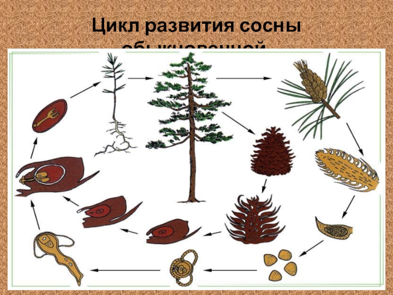 Слайд 6Цикл развития сосны обыкновенной.