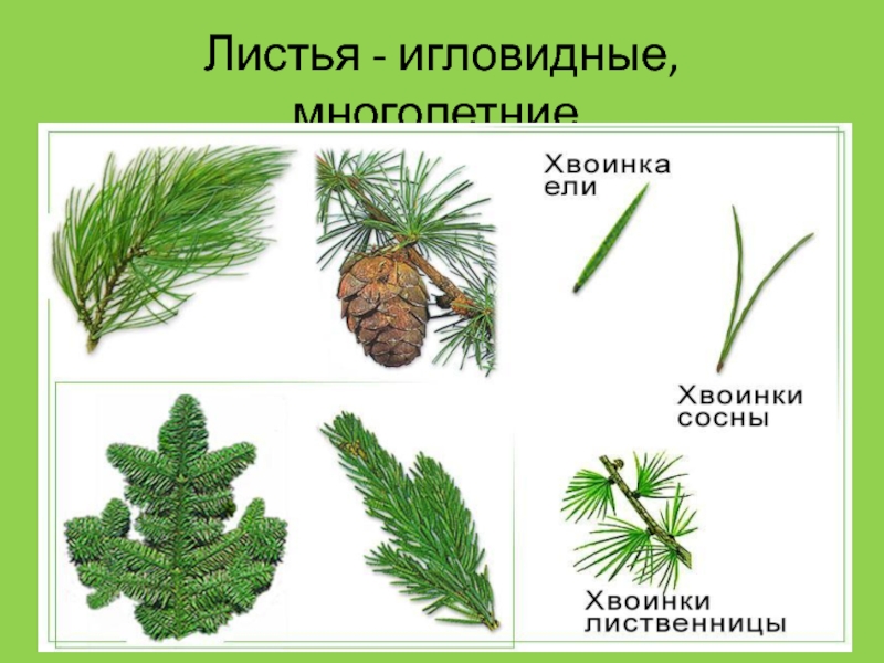 Слайд 5Листья - игловидные, многолетние.