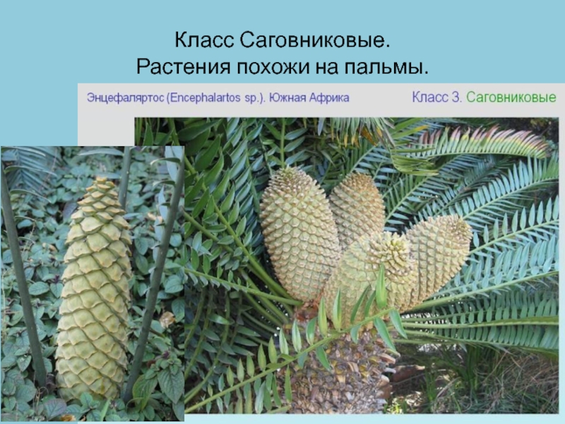 Слайд 10Класс Саговниковые. Растения похожи на пальмы.