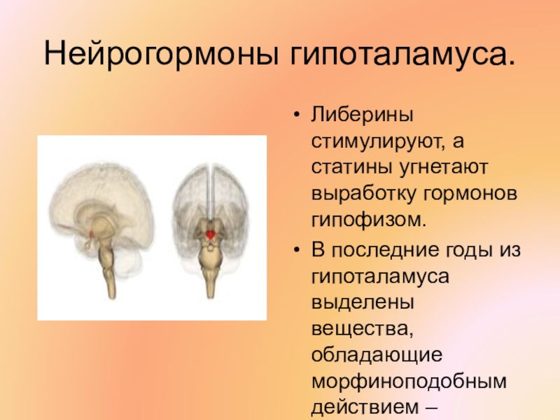который выделяет гормональные вещества с чрезвычайно высокой биологической активностью. Эти вещества достигают гипофиза и регулируют секрецию гипофизарных гормонов.