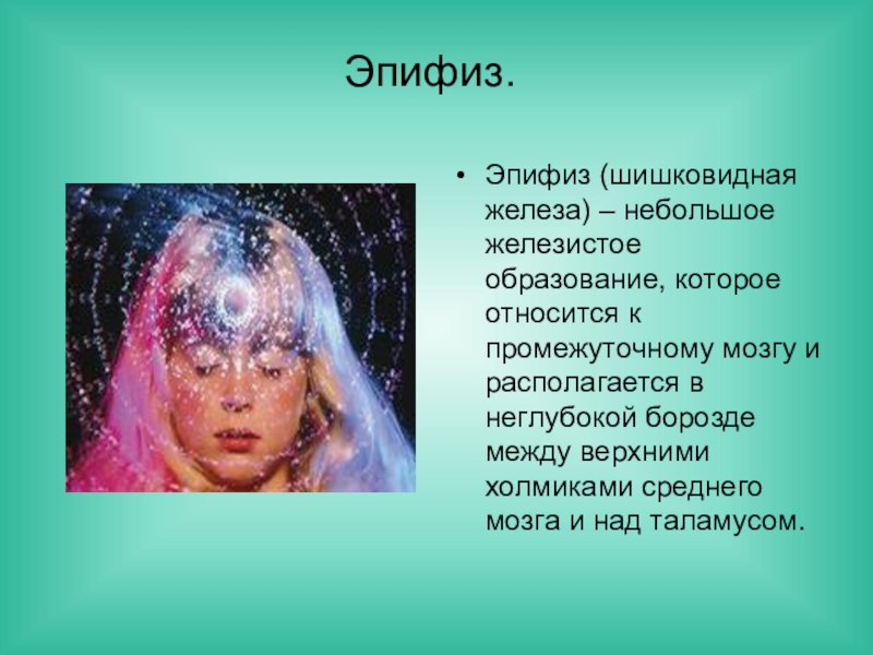 Эпифиз (шишковидная железа) – небольшое железистое образование, которое относится к промежуточному