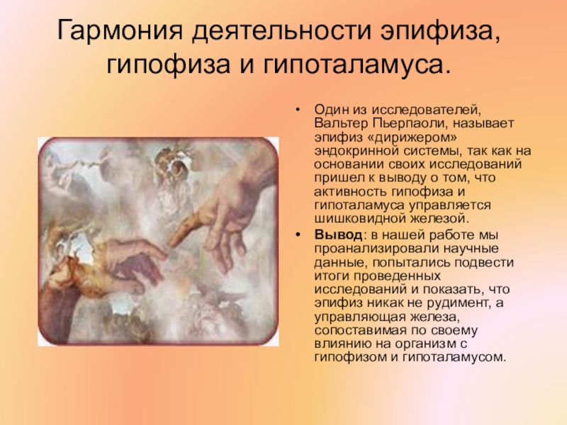 Слайд 22Гармония деятельности эпифиза, гипофиза и гипоталамуса.