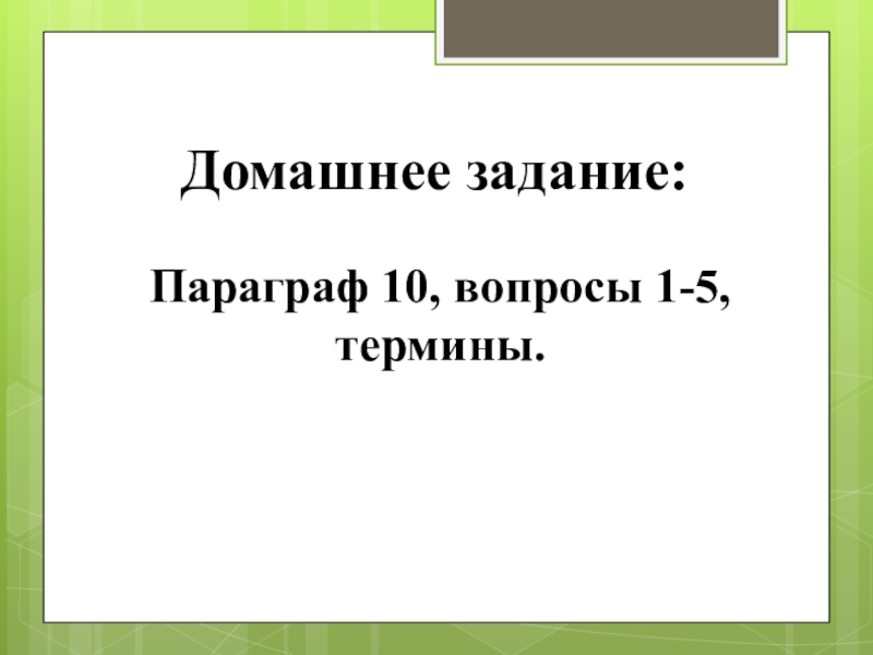 Домашнее задание:Параграф 10, вопросы 1-5, термины.