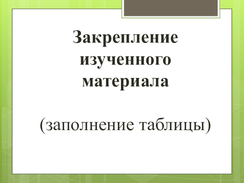 Слайд 11Закрепление изученного материала (заполнение таблицы)
