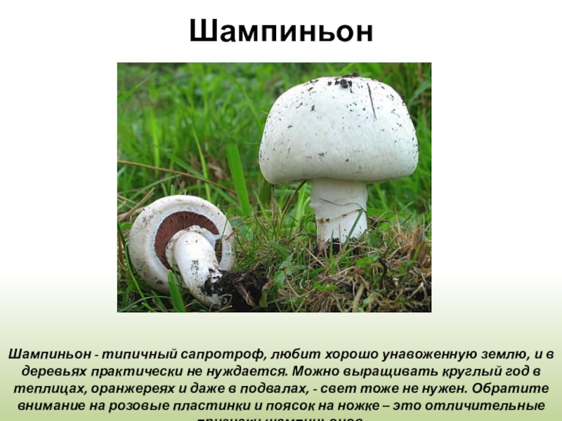 Шампиньон - типичный сапротроф, любит хорошо унавоженную землю, и в деревьях