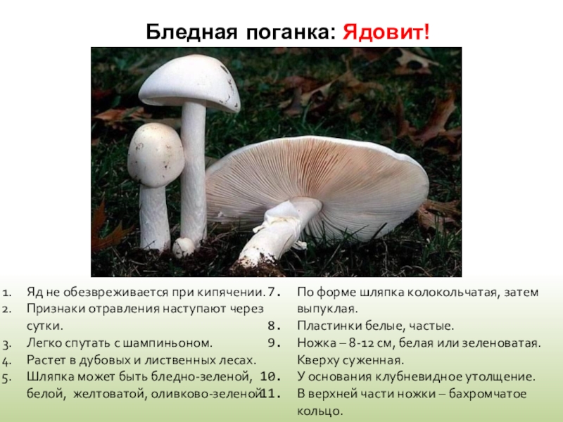 Шляпка может быть бледно-зеленой, белой, желтоватой, оливково-зеленой.