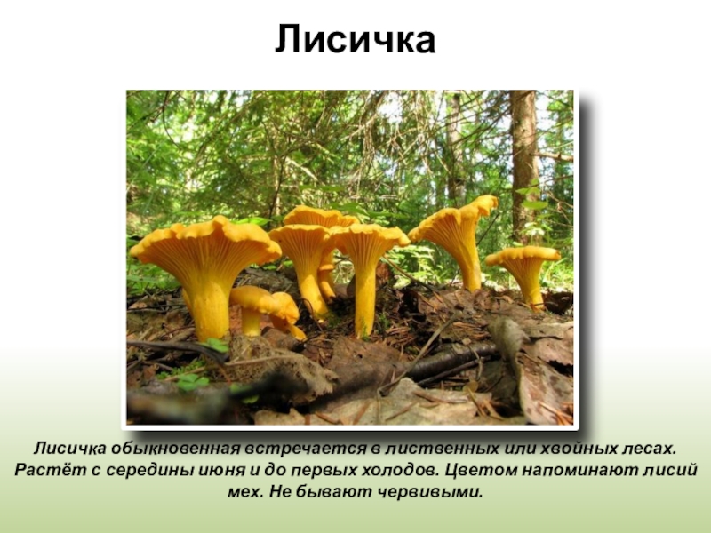 июня и до первых холодов. Цветом напоминают лисий мех. Не бывают червивыми.