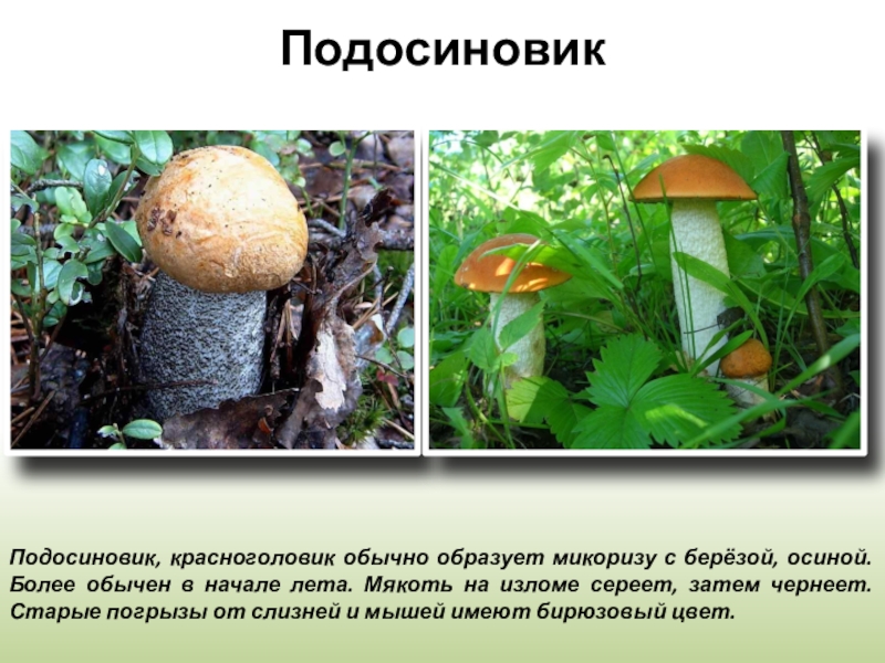Подосиновик, красноголовик обычно образует микоризу с берёзой, осиной. Более обычен в