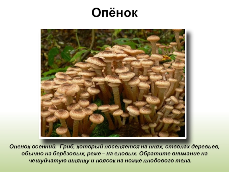 берёзовых, реже – на еловых. Обратите внимание на чешуйчатую шляпку и поясок на ножке плодового тела.