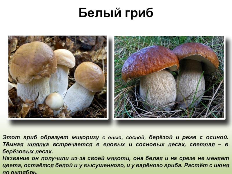 Название он получили из-за своей мякоти, она белая и на срезе не меняет цвета, остаётся белой и у высушенного, и у варёного гриба. Растёт с июня по октябрь.